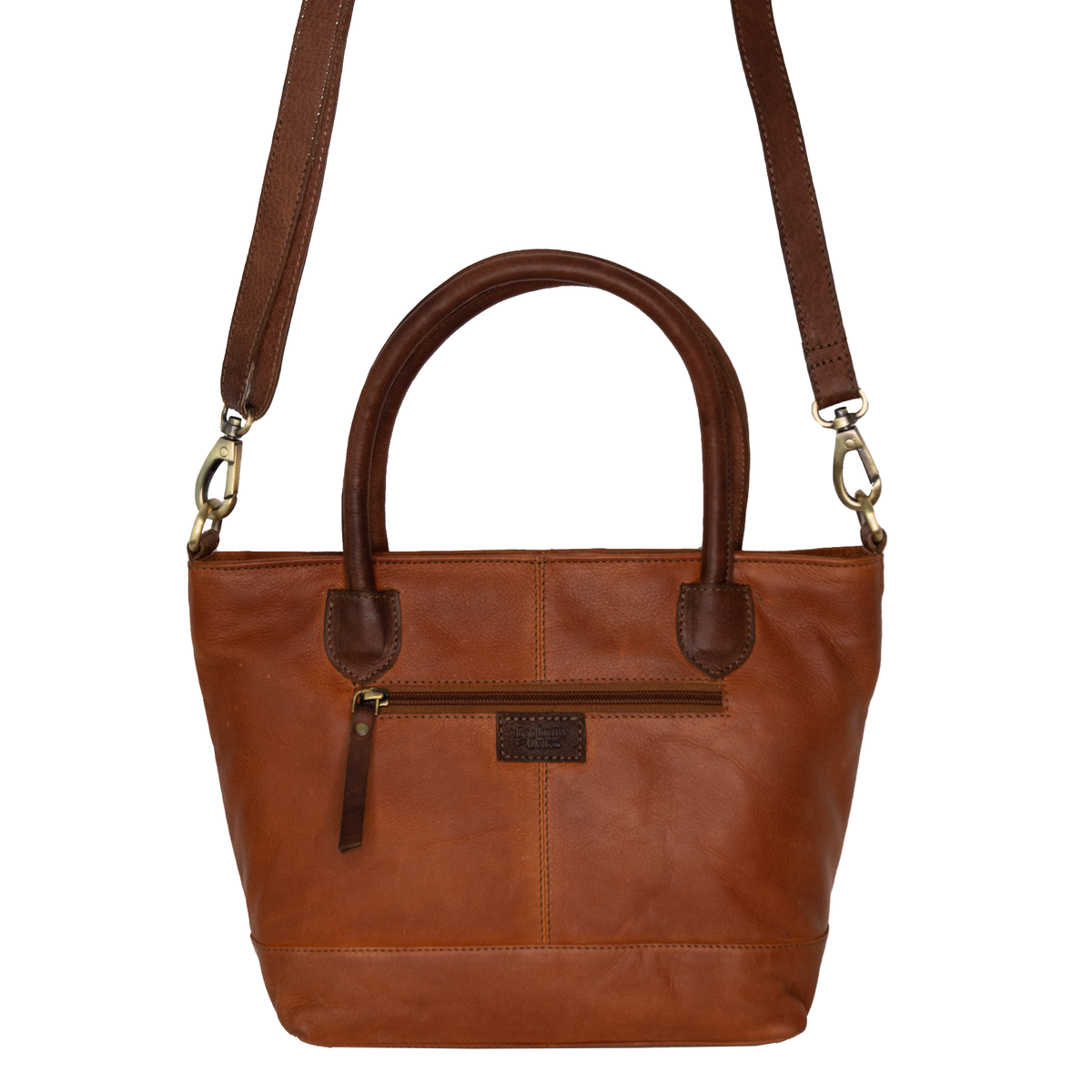 - Available in Cognac/Brown or Navy/Brown