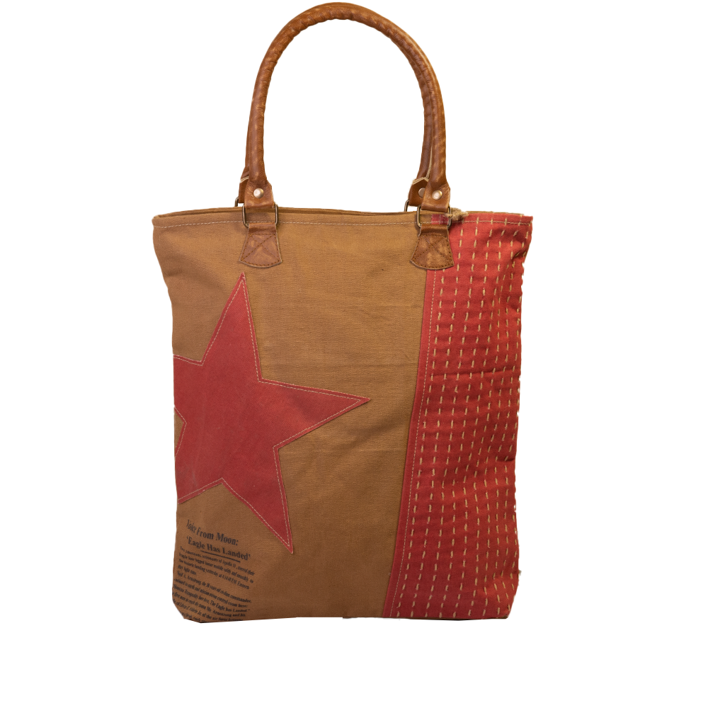 Each bag is truly original and unique since they are made from upcycled materials with contrasting genuine leather accents.