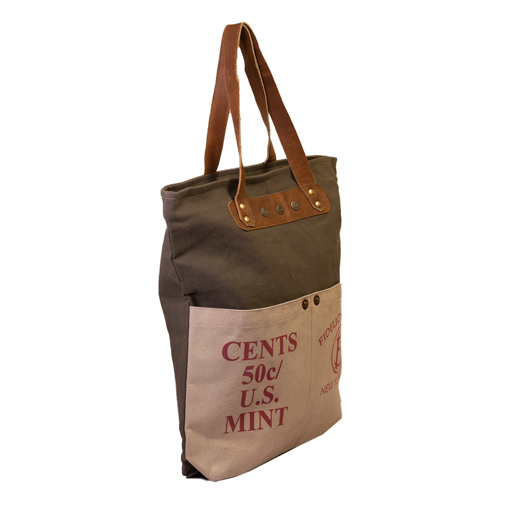 Each bag is truly original and unique since they are made from upcycled materials with contrasting genuine leather accents.